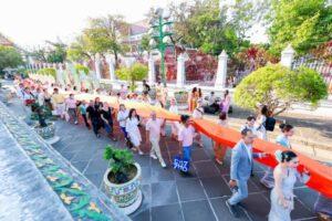 พระสงฆ์ กล่าวอนุโมทนา กรวดน้ำ-รับพร พิธีกรนำผู้เข้าร่วมงานนั่งสมาธิ อธิษฐานจิต เพื่อถวายเป็นพุทธบูชาแด่องค์สมเด็จพระสัมมาสัมพุทธเจ้า จากนั้นพิธีกรกล่าวนำถวายผ้า กราบลาพระรัตนตรัย และถ่ายรูปร่วมกันหน้า “พญายักษ์วัดแจ้ง” พร้อมเคลื่อนขบวน แห่รอบพระปรางค์ 3 รอบ และร่วมใจกันส่งผ้าให้เจ้าหน้าที่ขึ้นไปห่มพระปรางค์ด้านบนเป็นอันเสร็จพิธี