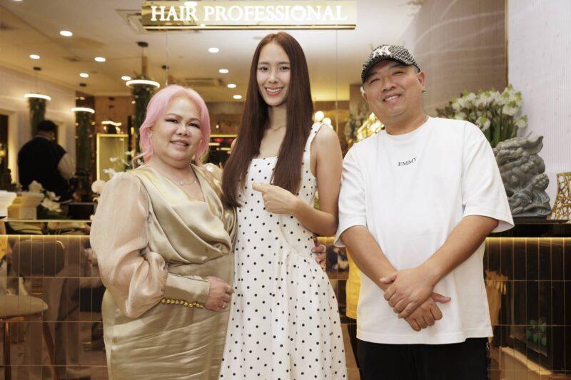 จริงๆ แล้ว ใบเป็นคนชอบผมยาวนะคะ ตั้งแต่เดินแบบแล้ว พอ พี่หนุ่ม แนะนำให้ต่อผมแบบขนนก ซึ่งเป็นนวัตกรรมใหม่ล่าสุด ก็ตัดสินใจทำเลยค่ะ พอทำแล้ว รู้สึกเลยว่ามันเบามาก เมื่อก่อนใบเคยต่อผม แต่เป็นแบบกิ๊ฟ กับกาว ก็เลยจะหนักๆ หัวค่ะ แต่พอมาต่อแบบขนนกก็ใช่เลย เบาหัวมากๆ ส่วนสีผมก็เลือกแบบสีน้ำตาลเข้ม เพราะจะช่วยให้หน้าเราสว่างขึ้น ต้องขอบคุณพี่หนุ่มกับพี่มิ้นท์มากๆ ที่ดูแลใบทั้งวันเลยค่ะ”