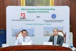 ถือเป็นความร่วมมือครั้งสำคัญในการพัฒนานวัตกรรมและเพิ่มพูลองค์ความรู้ในการดูแลผู้ป่วยหลอดเลือดสมอง (stroke) ของประเทศไทย กับ พิธีลงนามบันทึกข้อตกลงความเข้าใจ (MOU) ในการร่วมมือเกี่ยวกับงานวิจัยและการดูแลผู้ป่วยหลอดเลือดสมอง (stroke) ระหว่าง บริษัท ซีเอสพีซี ฟาร์มา (ไทยแลนด์) ผู้พัฒนา ผลิต และจัดจำหน่ายผลิตภัณฑ์ยา ที่มีสำนักงานใหญ่ในประเทศจีน และ คณะแพทยศาสตร์ศิริราชพยาบาล มหาวิทยาลัยมหิดล สถาบันชั้นนำทางการแพทย์ ที่มีชื่อเสียงในด้านงานวิจัย ความรู้วิชาการ และการบริการผู้ป่วยในระดับแถวหน้าของไทย โดยมีวัตถุประสงค์เพื่อการร่วมมือทางด้านงานวิจัย, การแลกเปลี่ยนองค์ความรู้ และพัฒนาการดูแลผู้ป่วยด้วยนวัตกรรมใหม่ โดยมุ่งหวังเพื่อเพิ่มพูลองค์ความรู้ด้านการรักษา และการจัดการผู้ป่วย stroke ผ่านความร่วมมือทางด้านการศึกษาวิจัย แลกเปลี่ยนความรู้ทางวิชาการ เทคโนโลยีทางการแพทย์ และยานวัตกรรม ณ ห้องประชุม คณะแพทยศาสตร์ ตึกอำนวยการ ชั้น 2 โรงพยาบาลศิริราช