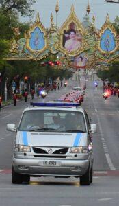 จากนั้นเวลา 16.26 น.พระบาทสมเด็จพระเจ้าอยู่หัว และสมเด็จพระนางเจ้าฯ พระบรมราชินี พร้อมด้วยพระบรมวงศานุวงศ์ ประทับรถยนต์พระที่นั่ง เสด็จพระราชดำเนินตามรถยนต์หลวงเชิญพระบรมศพ ออกจากโรงพยาบาลจุฬาลงกรณ์ สภากาชาดไทย ไปยังพระบรมมหาราชวัง ท่ามกลางประชาชน และพยาบาลโรงพยาบาลจุฬาลงกรณ์ สภากาชาดไทย กว่า 400 คน ร่วมถวายความอาลัยตลอดสองข้างทางด้วยความโศกเศร้า