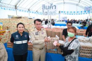 ทั้งนี้ ภายในงานยังมีการจำหน่ายสินค้าไฮไลท์ และสินค้าผลไม้ที่เชื่อมโยงจากกลุ่มเกษตรกร ในราคาพิเศษทุกวัน อาทิ ไข่ไก่เบอร์ M แผงละ 80 บาท น้ำตาลทราย กิโลกรัมละ 20 บาท น้ำมันพืชปาล์ม ขวดละ 40 บาทข้าวหอมมะลิ (5 กก.) ถุงละ 120 บาท และยังช่วยเหลือผู้ประกอบการในพื้นที่ 7 จังหวัดชายแดนไทย-กัมพูชา สินค้ารวมสินค้าจากผู้ประกอบการชายแดนเป็น “เซตสินค้า” ภายในงานได้อีกด้วย