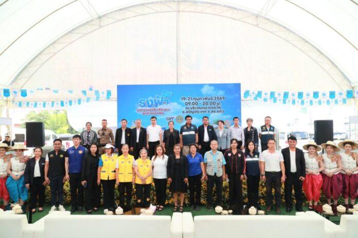 เมื่อวันที่ 20 กุมภาพันธ์ 2569 เวลา 11.00 น. ณ บริเวณตลาดรถไฟ อำเภออรัญประเทศ จังหวัดสระแก้ว นายจิรวุฒิ สุวรรณอาจ รองอธิบดีกรมการค้าภายใน เป็นประธานเปิดงาน “มหกรรมธงฟ้าเยียวยาลดค่าครองชีพ” จังหวัดสระแก้ว โดยมีรองผู้ว่าราชการจังหวัด หัวหน้าส่วนราชการ ผู้บริหารภาคเอกชน และประชาชนในพื้นที่เข้าร่วมงานอย่างคึกคัก เพื่อเดินหน้านโยบายรัฐบาลในการลดรายจ่าย เพิ่มรายได้ ขยายโอกาส และกระตุ้นเศรษฐกิจในพื้นที่ชายแดนไทย-กัมพูชา